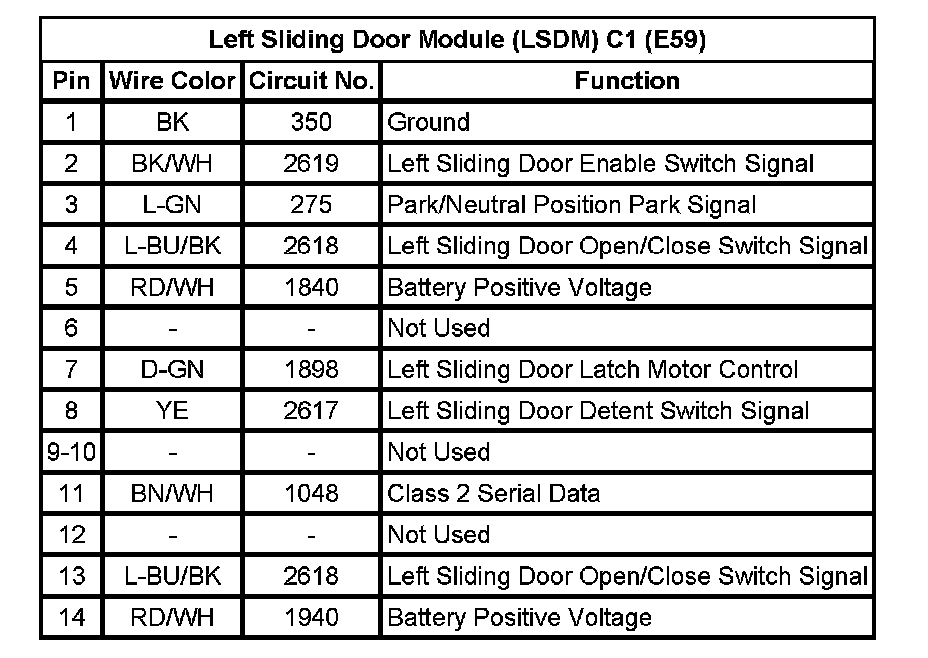 Left Sliding Door Module (LSDM) C2 (E59)