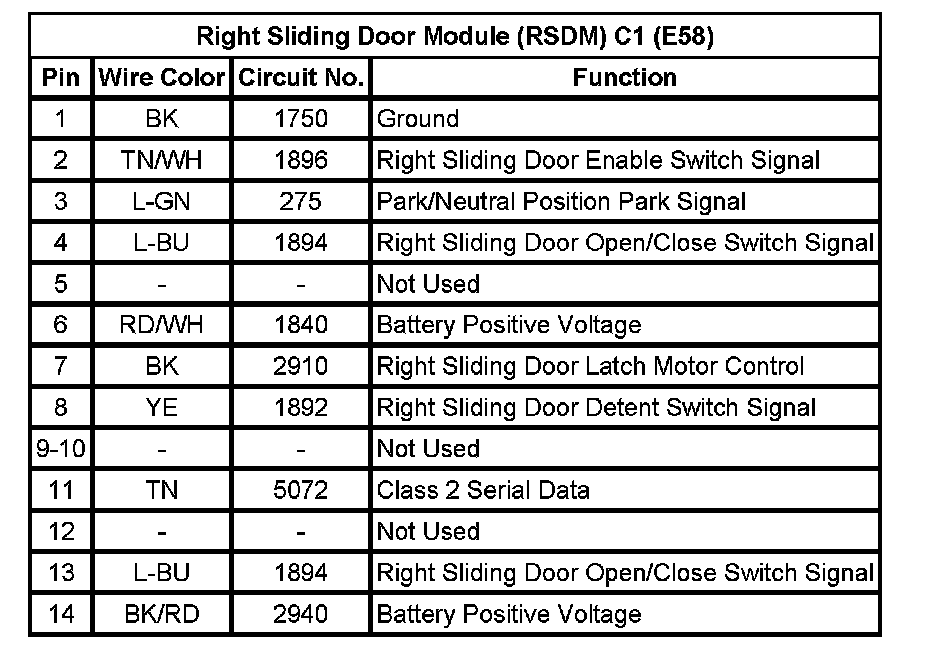Right Sliding Door Module (RSDM) C1 (E58)