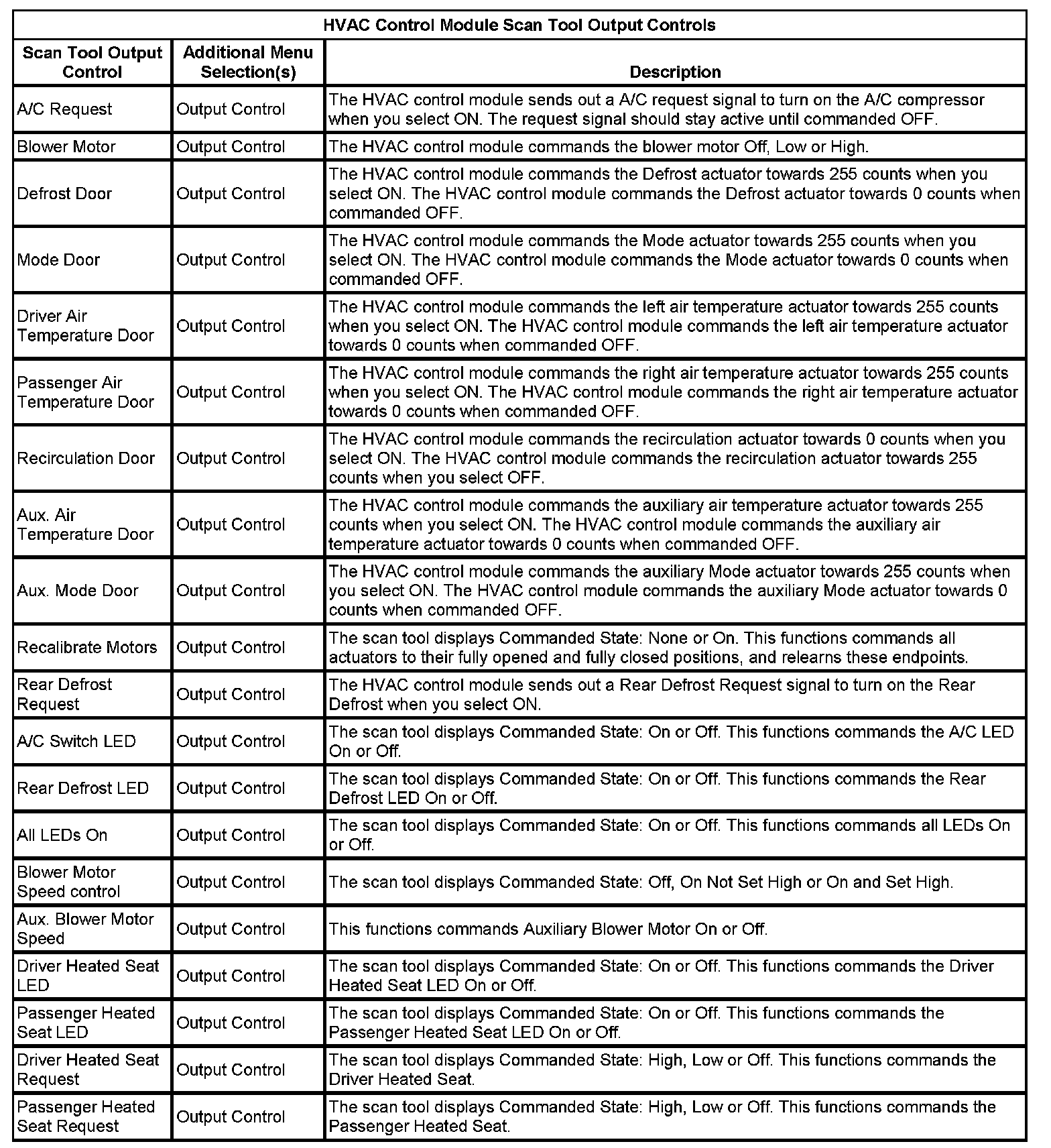Scan Tool Output Controls