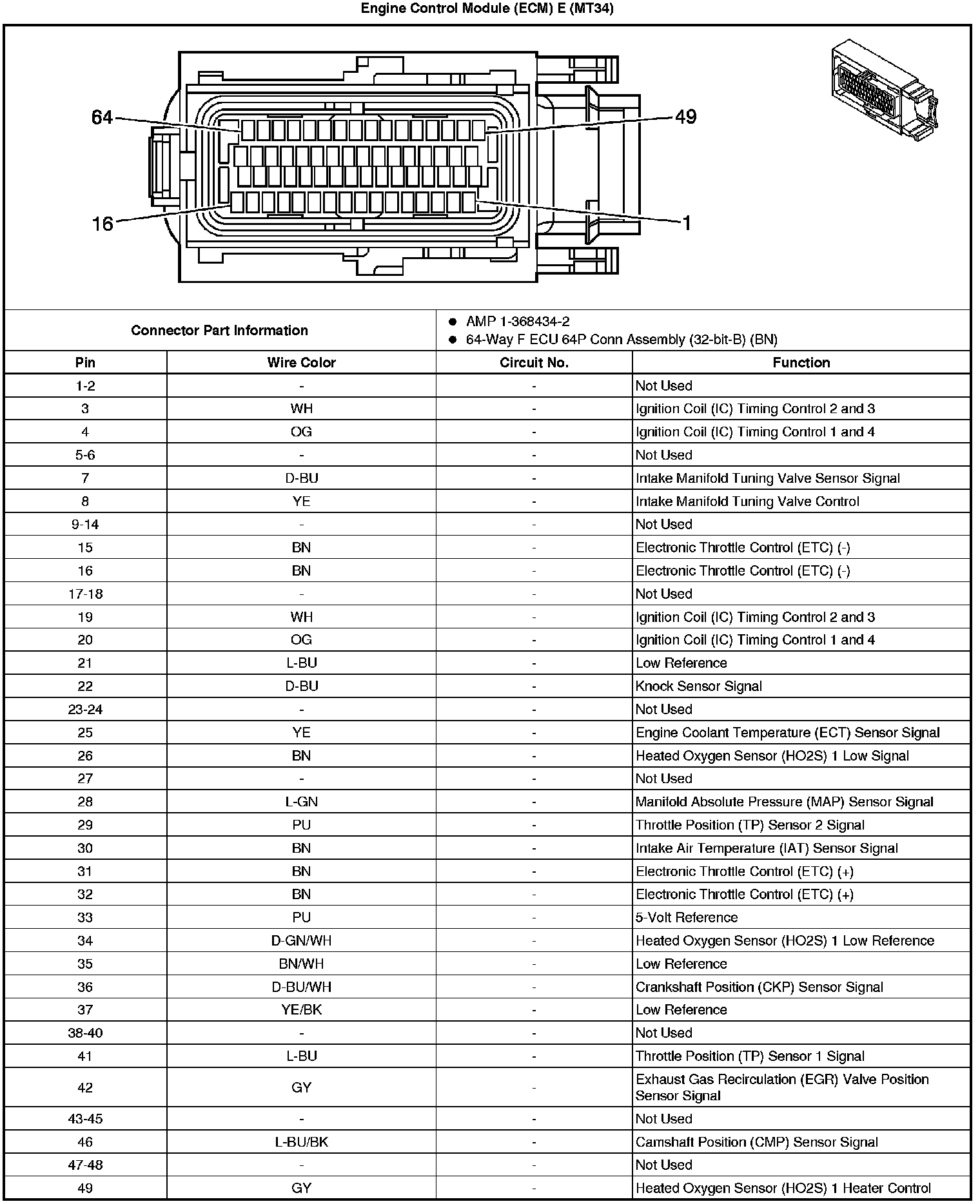 Engine Control Module Connector End Views (Hatchback)