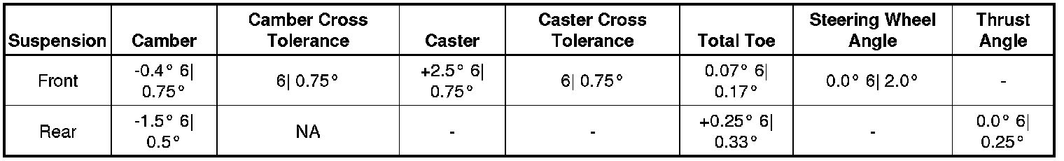 Wheel Alignment Specifications