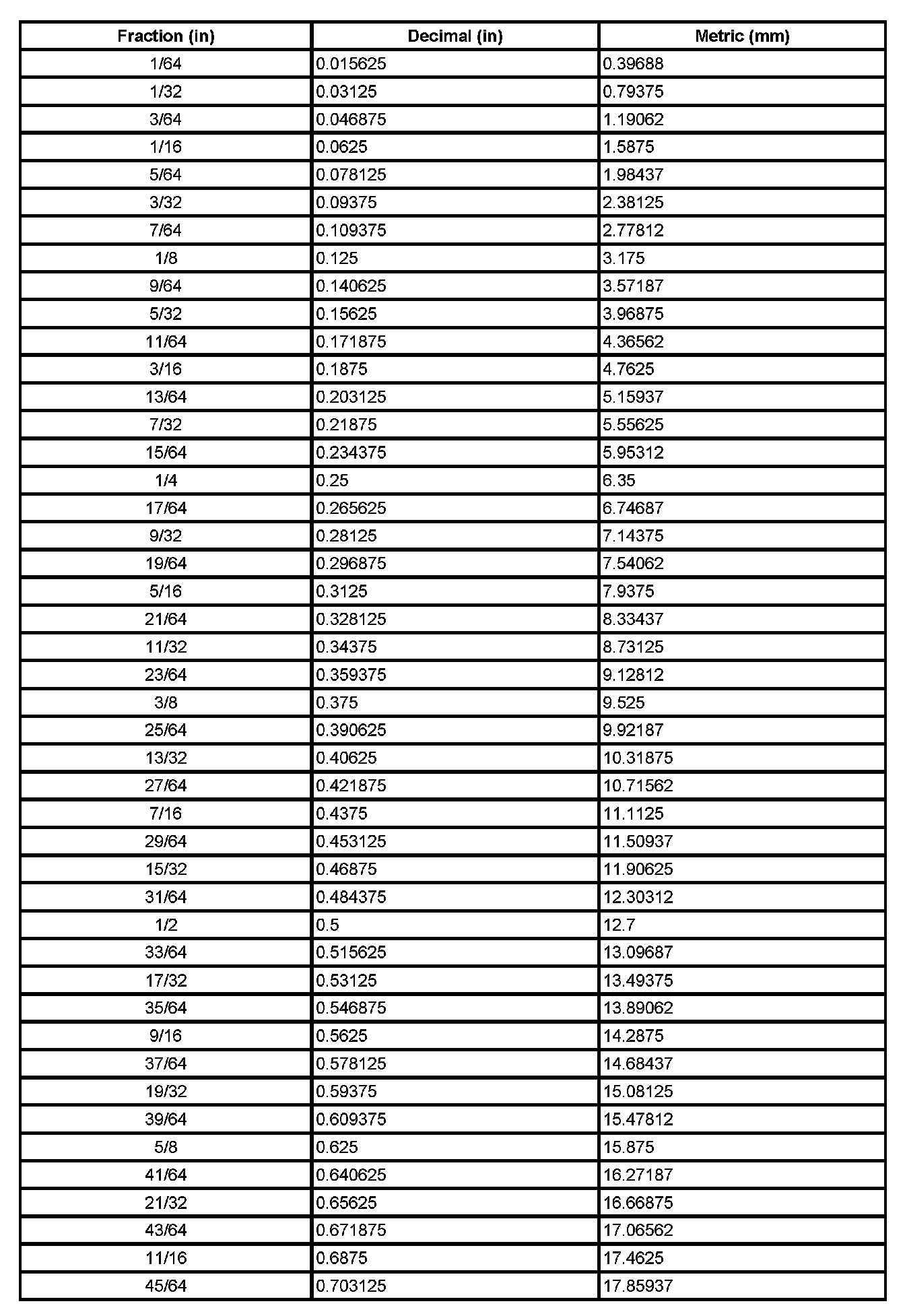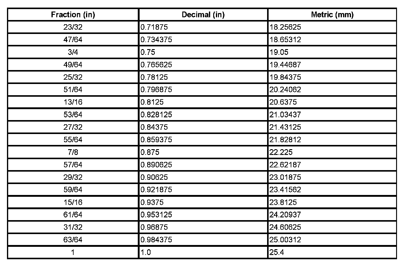 Decimal and Metric Equivalents
