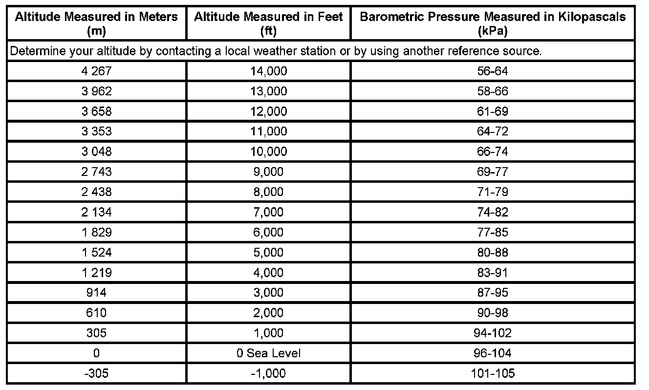 Altitude Versus Barometric Pressure