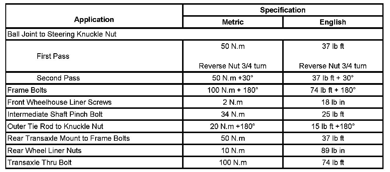 Fastener Tightening Specifications