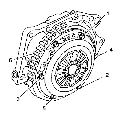 *Tighten the clutch cover to flywheel bolts in the sequence shown.