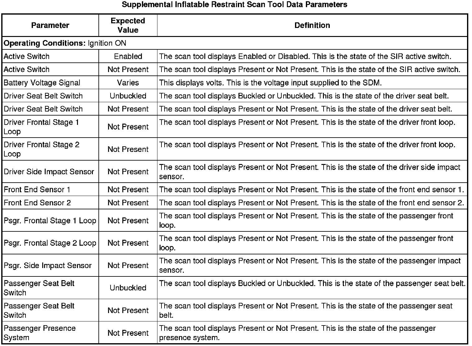 Inflatable Restraint Sensing and Diagnostic Module Scan Tool Information