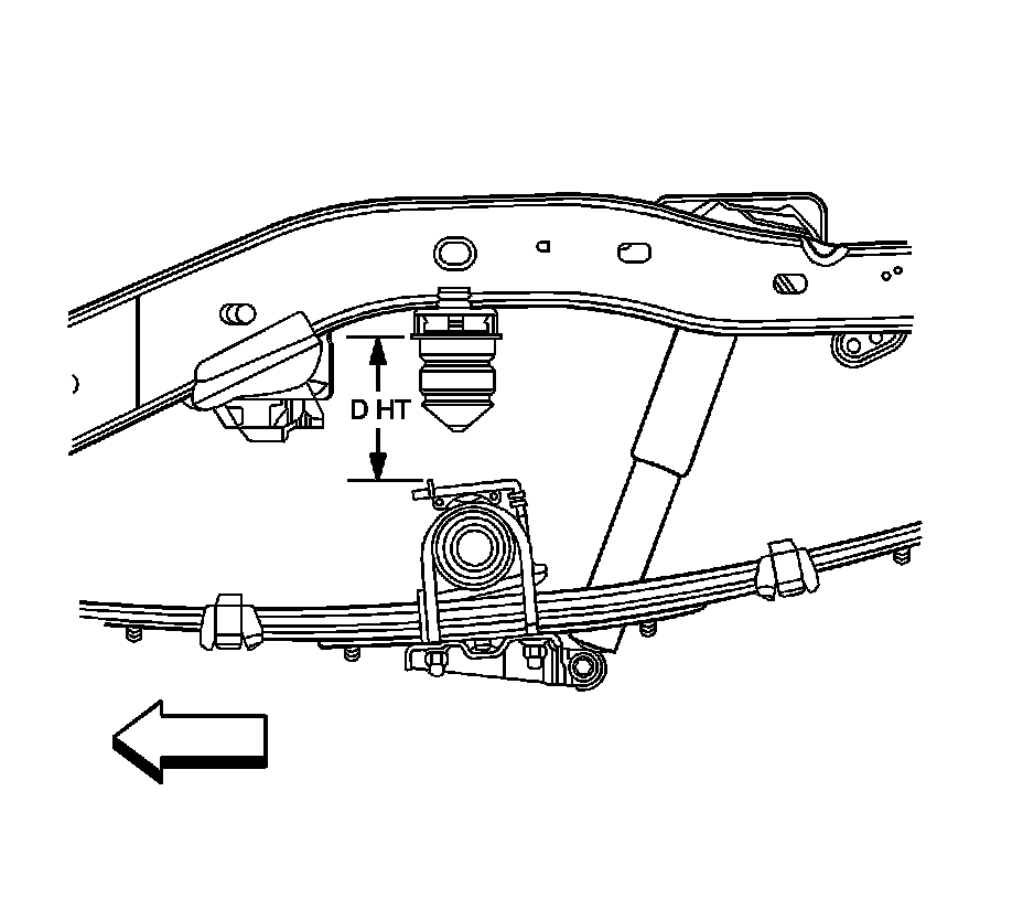 4. D Height shall be measured as the perpendicular distance from the inside lip of the jounce bumper cup flange to the jounce bumper contact pad, or top of the rear axle "tube" when a jounce bumper pad is not used.