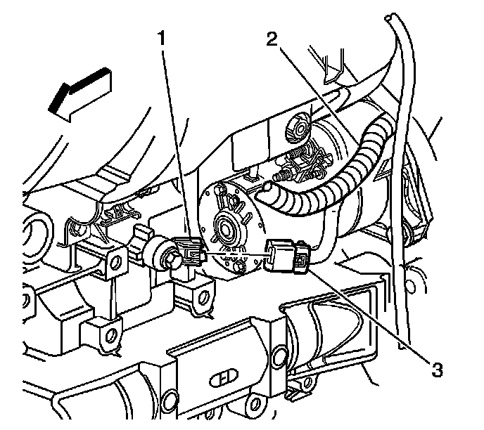3. Disconnect the engine wiring harness electrical connector (3) from the KS (1).