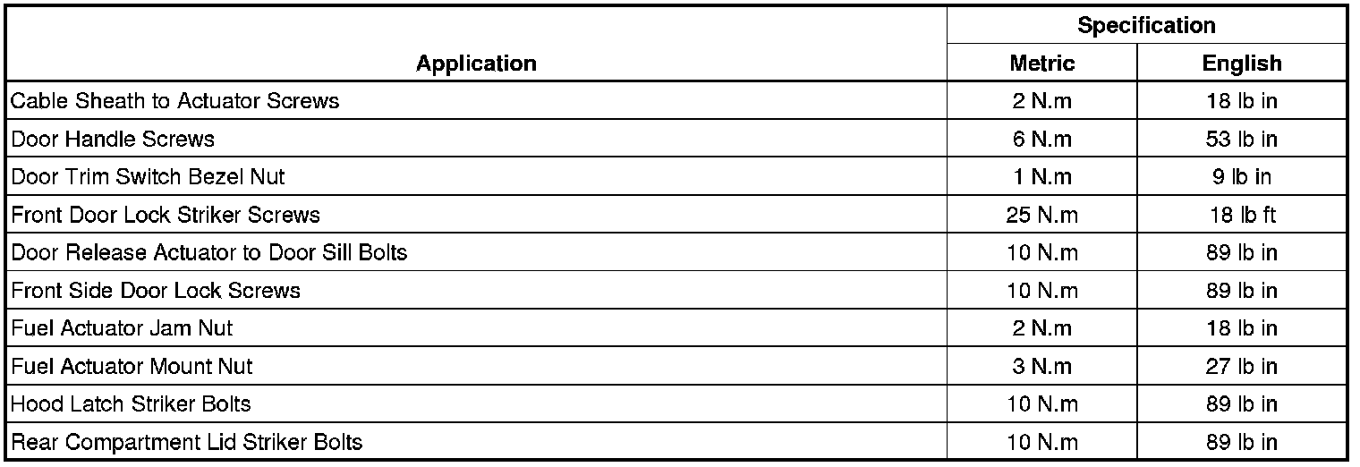 Fastener Tightening Specifications