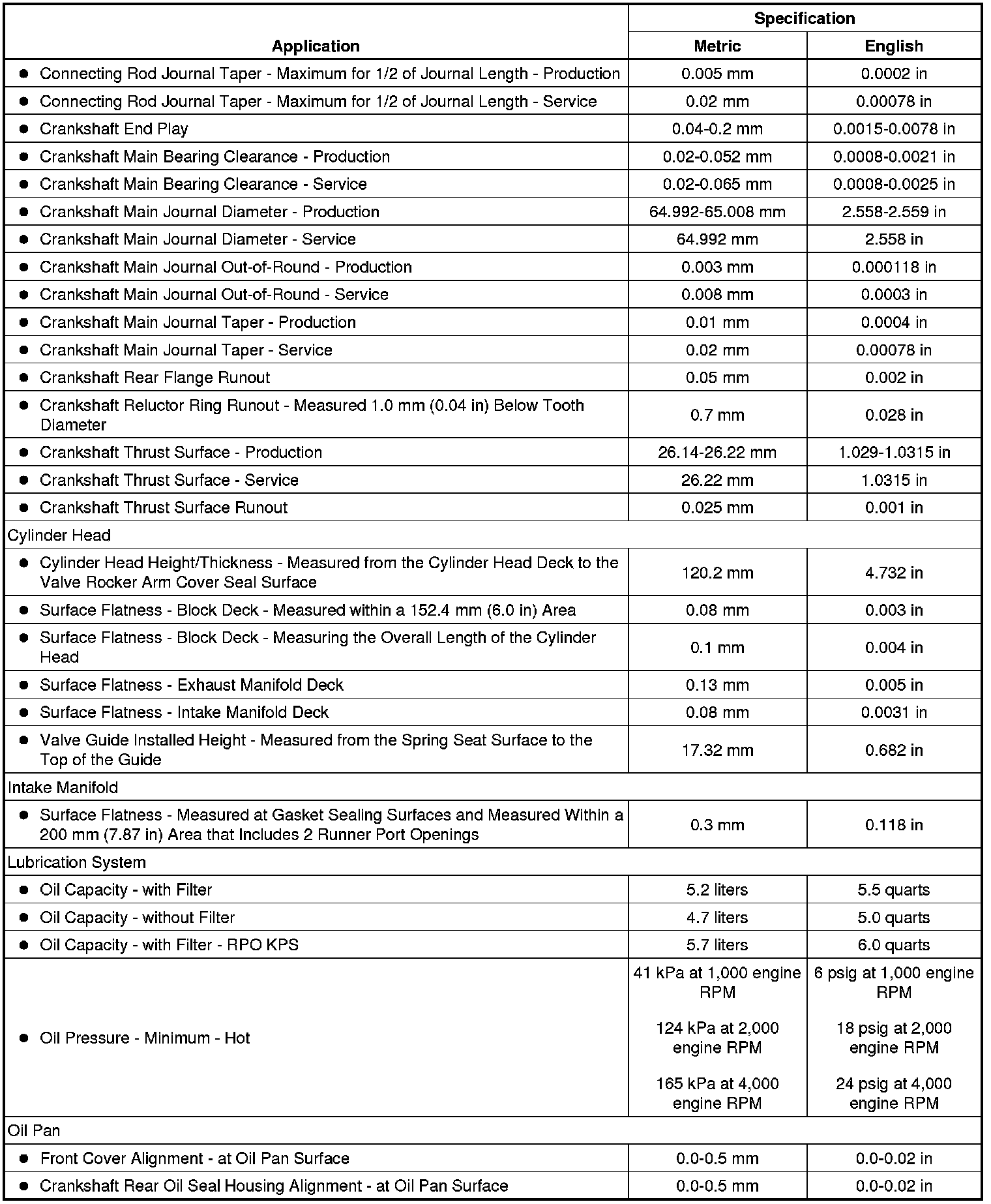 Engine Mechanical Specifications (6.2L)