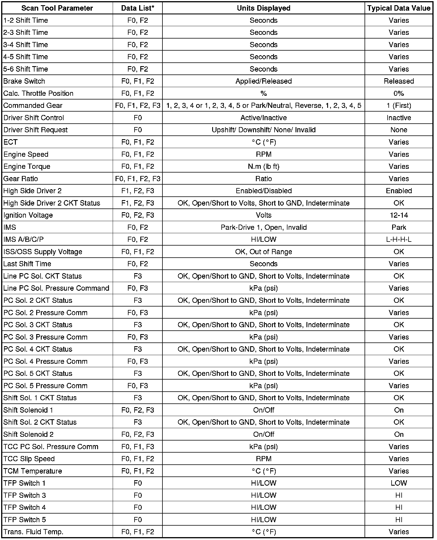 Home >> Chevrolet >> 2008 >> Corvette V8-7.0L >> Repair and Diagnosis >> Powertrain Management >> Transmission Control Systems >> Testing and Inspection >> Scan Tool Data List