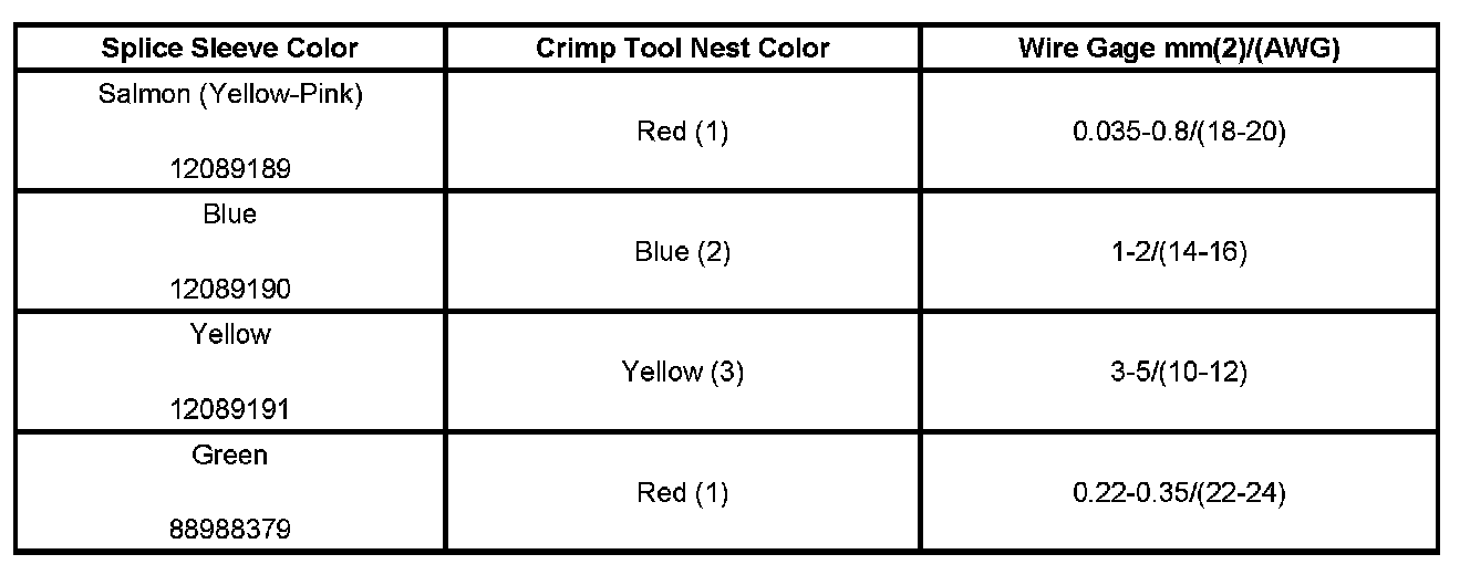 6. Select the proper DuraSeal splice sleeve according to the wire size. Refer to the above table at the beginning of the repair procedure for the color coding of the DuraSeal splice sleeves and the crimp tool nests.