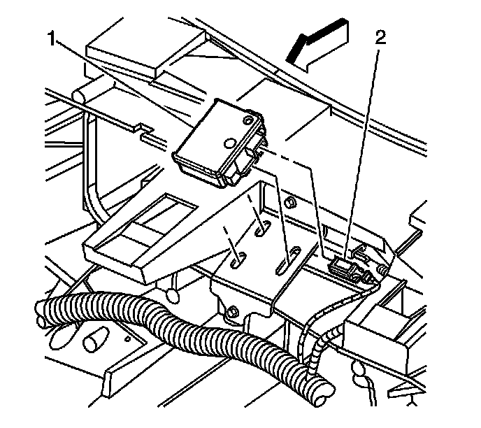 3. Disengage the remote control door lock receiver (1) from the door lock receiver bracket.