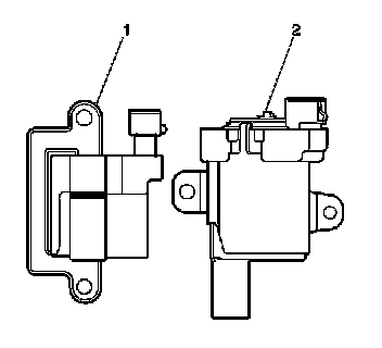 * There are 2 different manufacturers for the ignition coils. the Melco(R) (1) (square design), and the Delphi(R) (2) (round design). These 2 coils use 2 different spark plug wire, and mounting brackets.