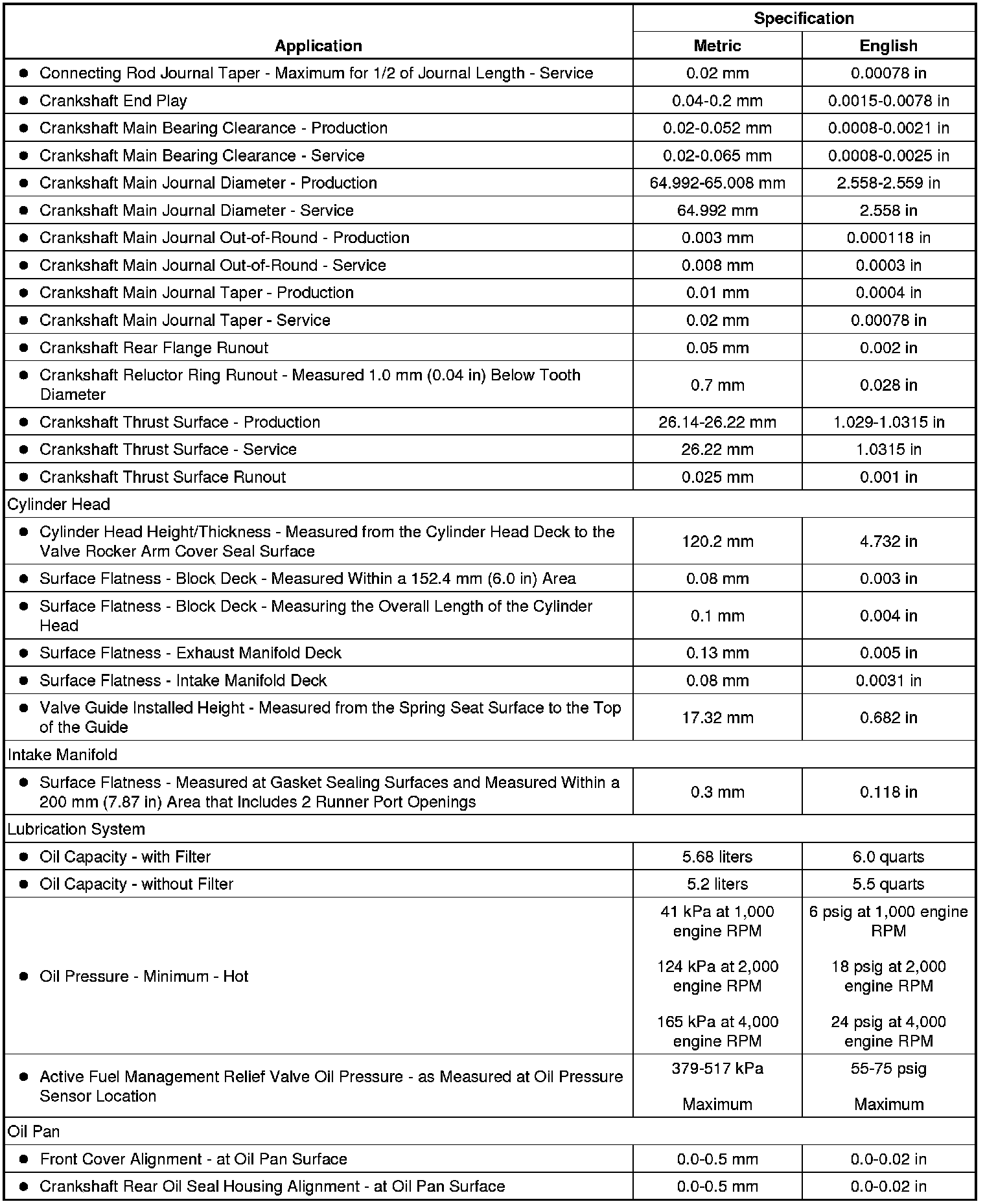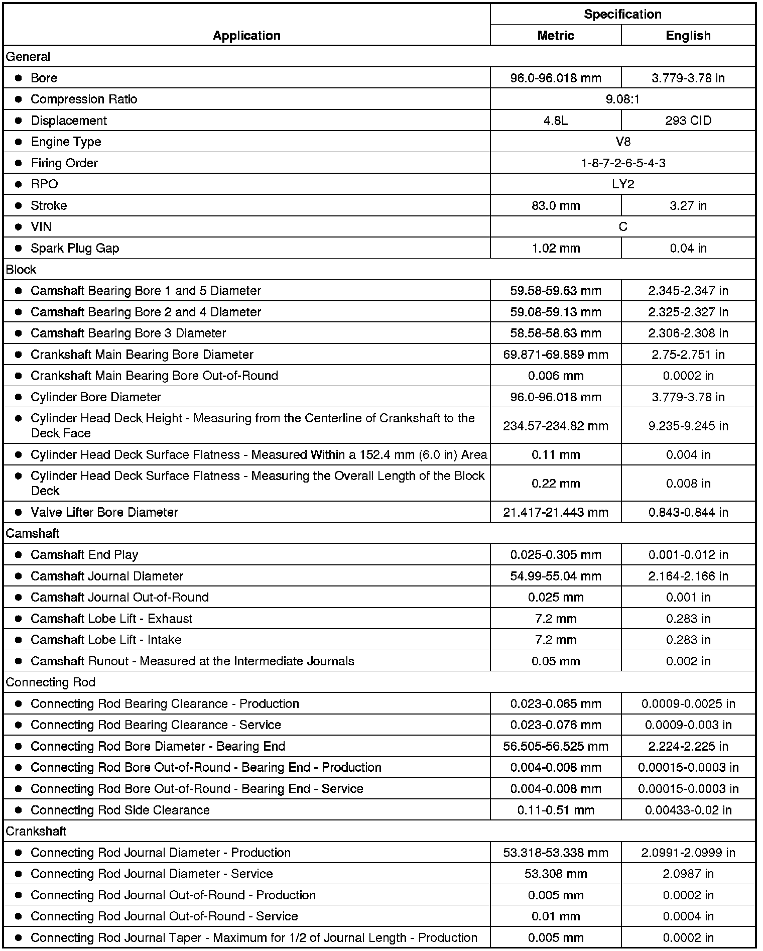 Engine Mechanical Specifications (RPO LY2 VIN C) (4.8L)