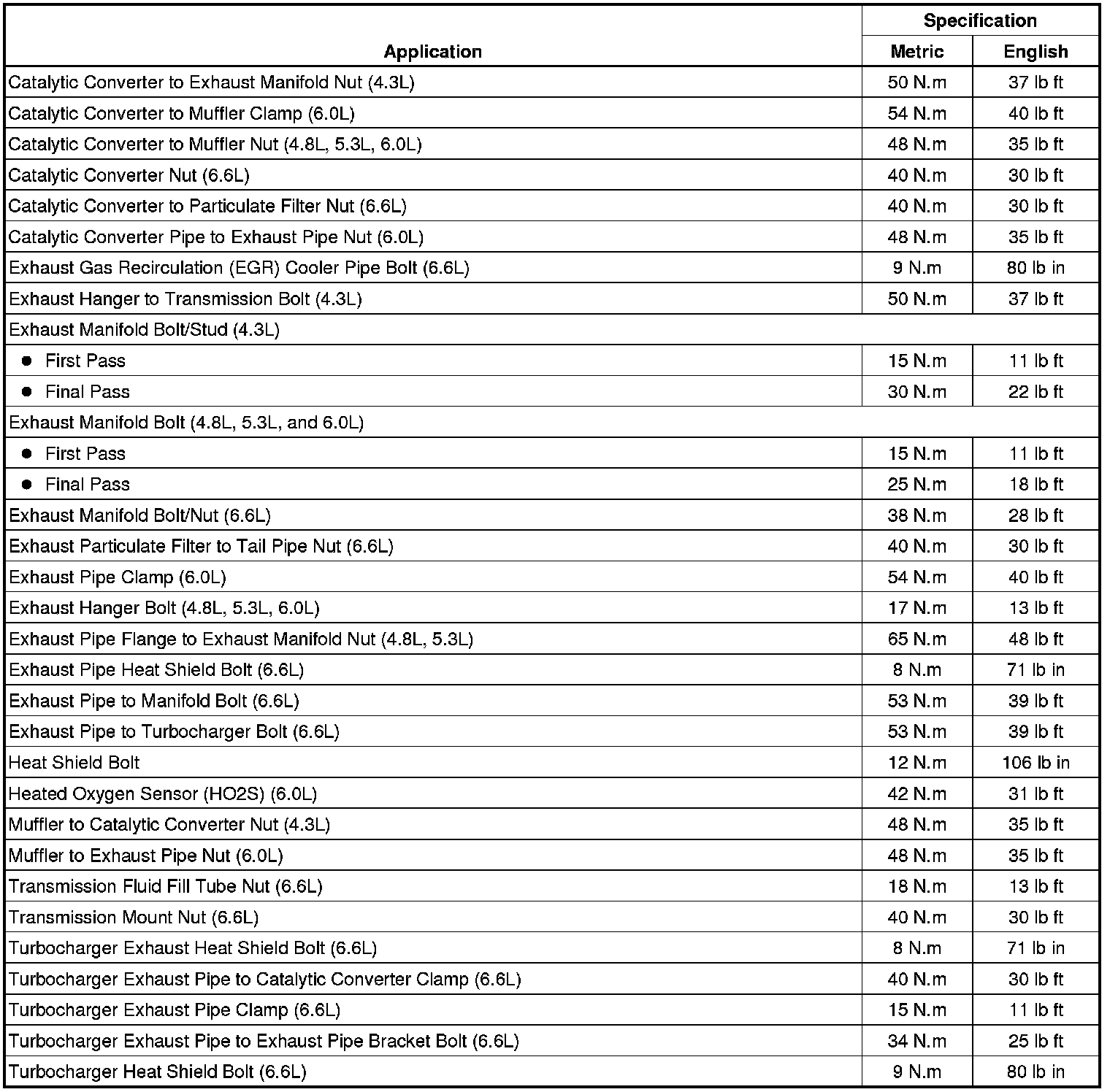 Fastener Tightening Specifications