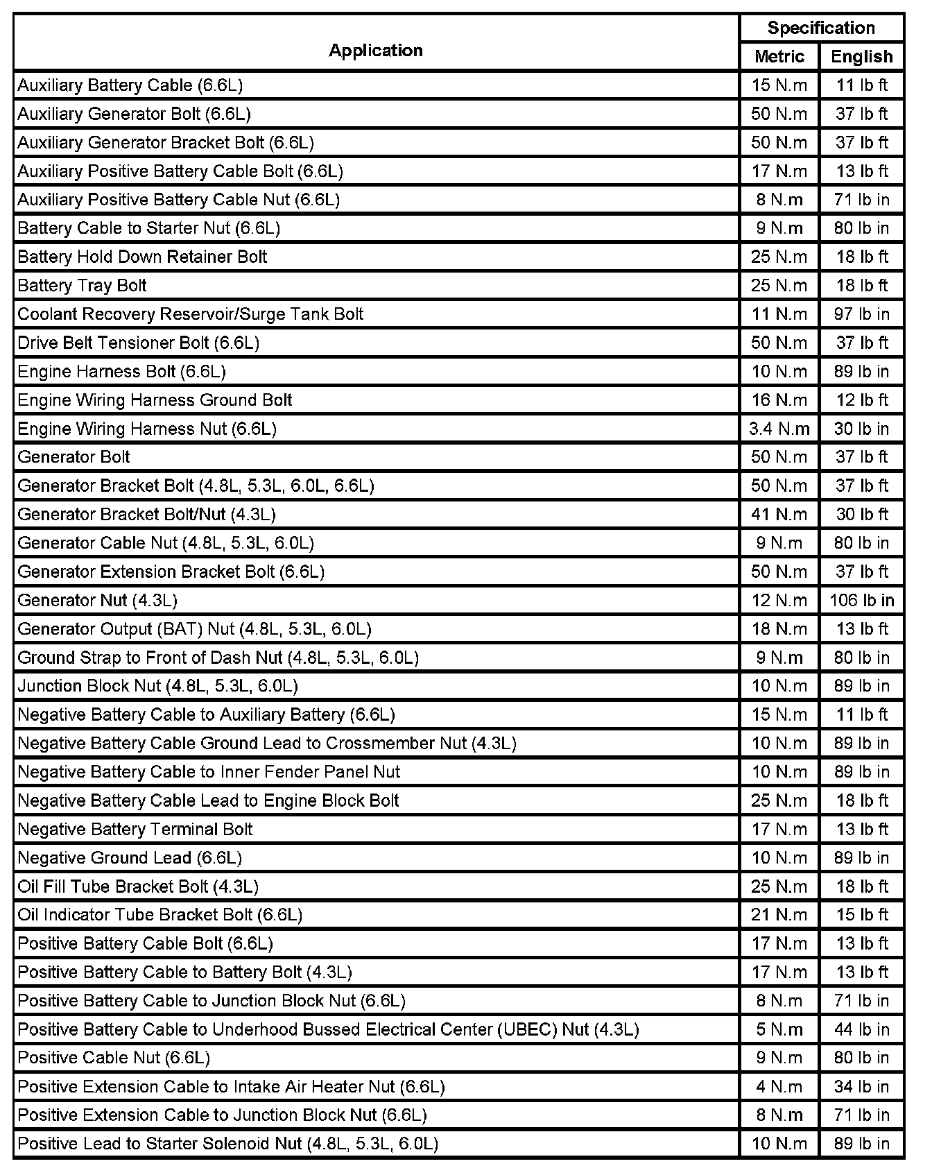 Fastener Tightening Specifications