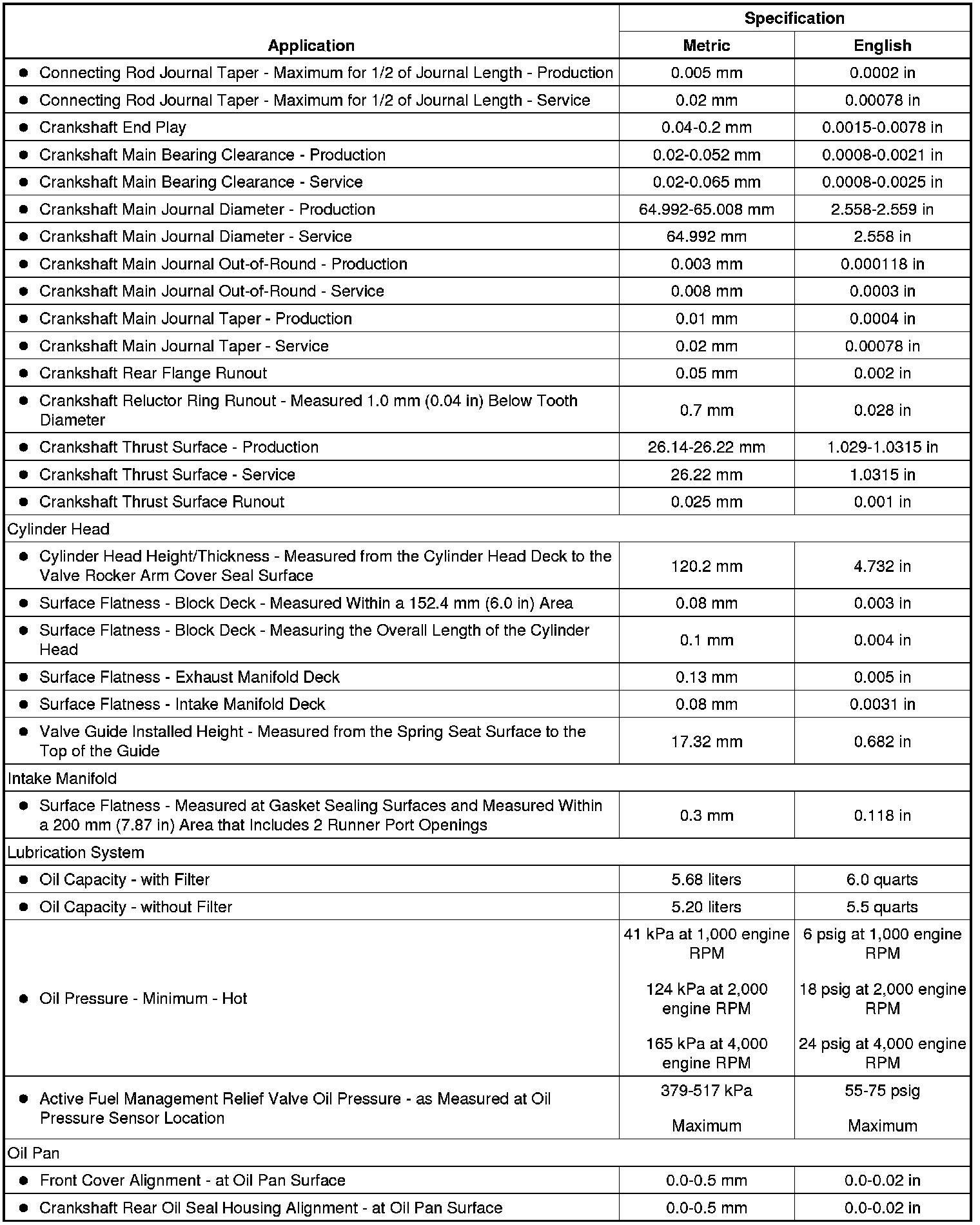 Engine Mechanical Specifications (RPO LY6 VIN K) (6.0L)