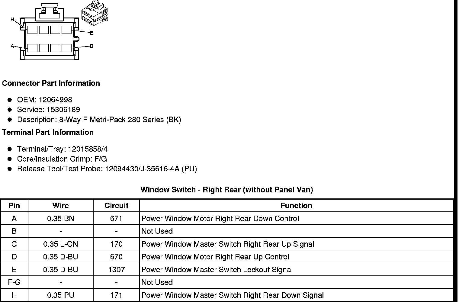 Window Switch - Right Rear (without Panel Van)