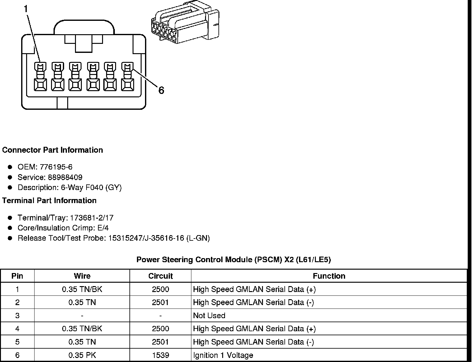Power Steering Control Module (PSCM) X2 (L61/LE5)