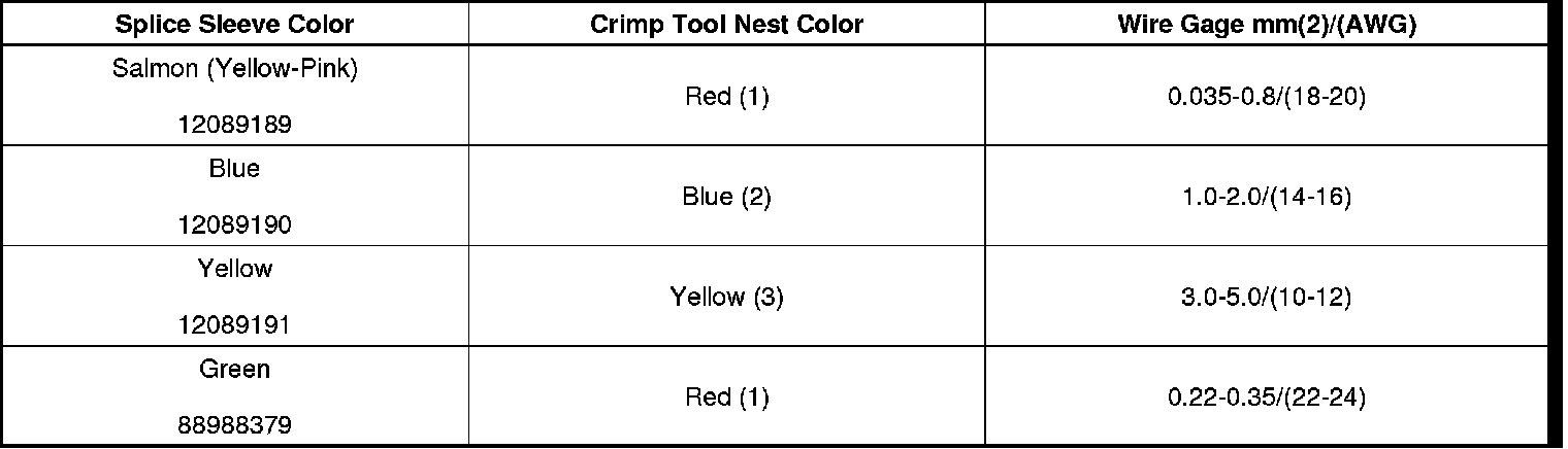 4. Select the proper DuraSeal splice sleeve according to the wire size. Refer to the above table at the beginning of the repair procedure for the color coding of the DuraSeal splice sleeves and the crimp tool nests.