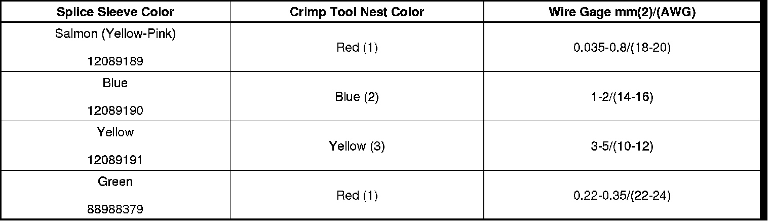 6. Select the proper DuraSeal splice sleeve according to the wire size. Refer to the above table at the beginning of the repair procedure for the color coding of the DuraSeal splice sleeves and the crimp tool nests.