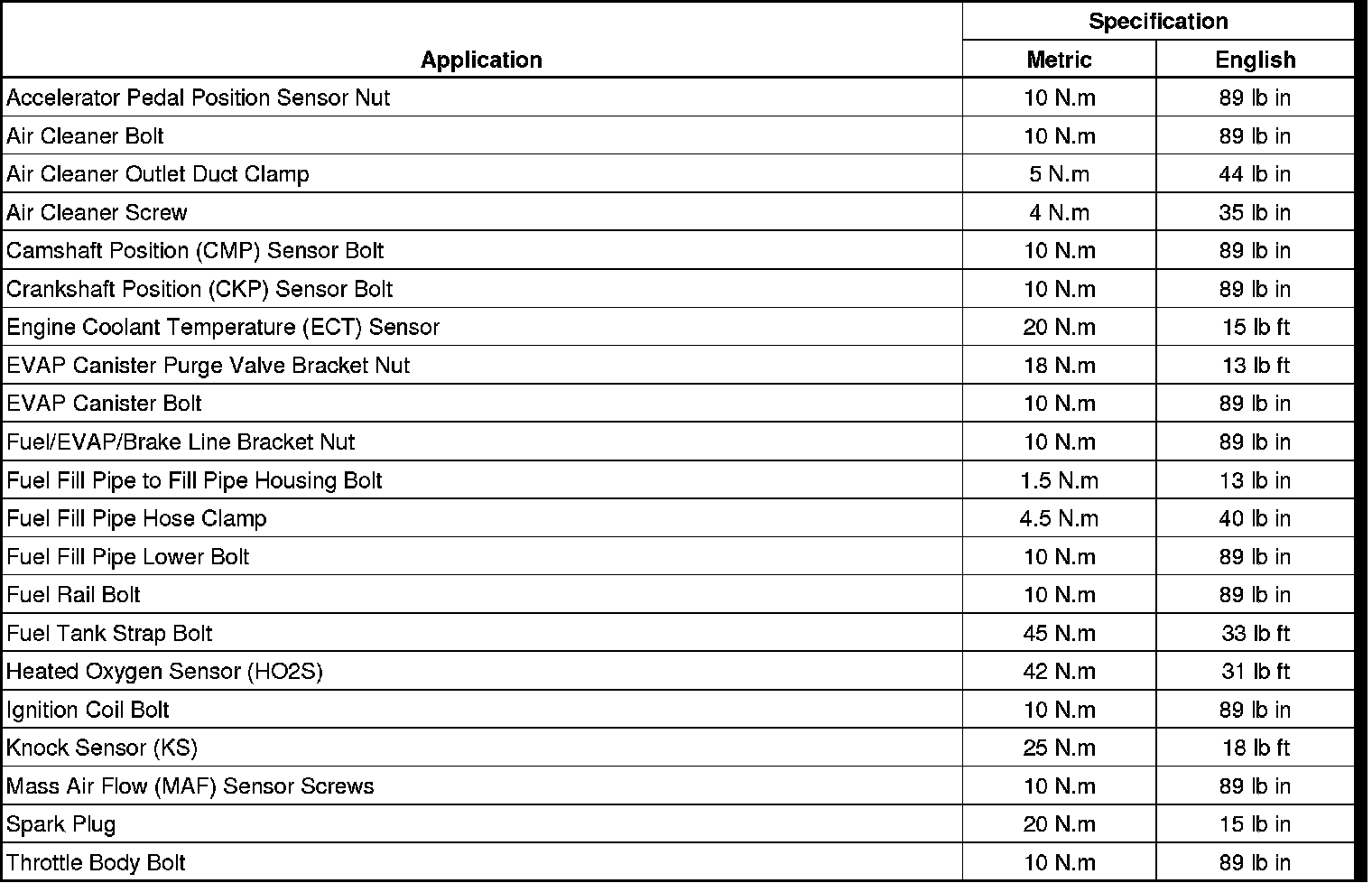 Fastener Tightening Specifications