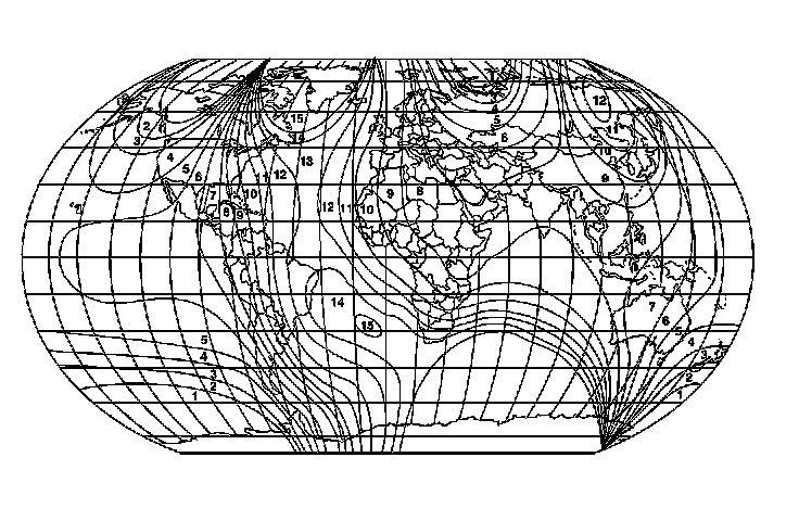 1. Locate your current geographic location on the World Magnetic Variation Map.