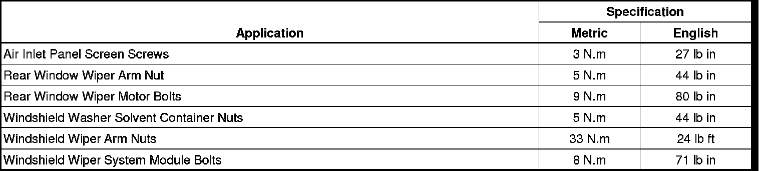 Wiper and Washer Systems: Specifications