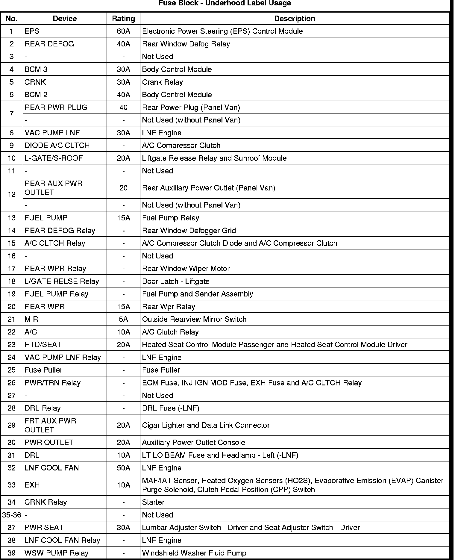 Fuse Block - Rear Access Panel Top View (Panel Van)