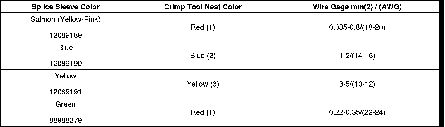 4. Select the proper DuraSeal splice sleeve according to the wire size. Refer to the above table at the beginning of the repair procedure for the color coding of the DuraSeal splice sleeves and the crimp tool nests.