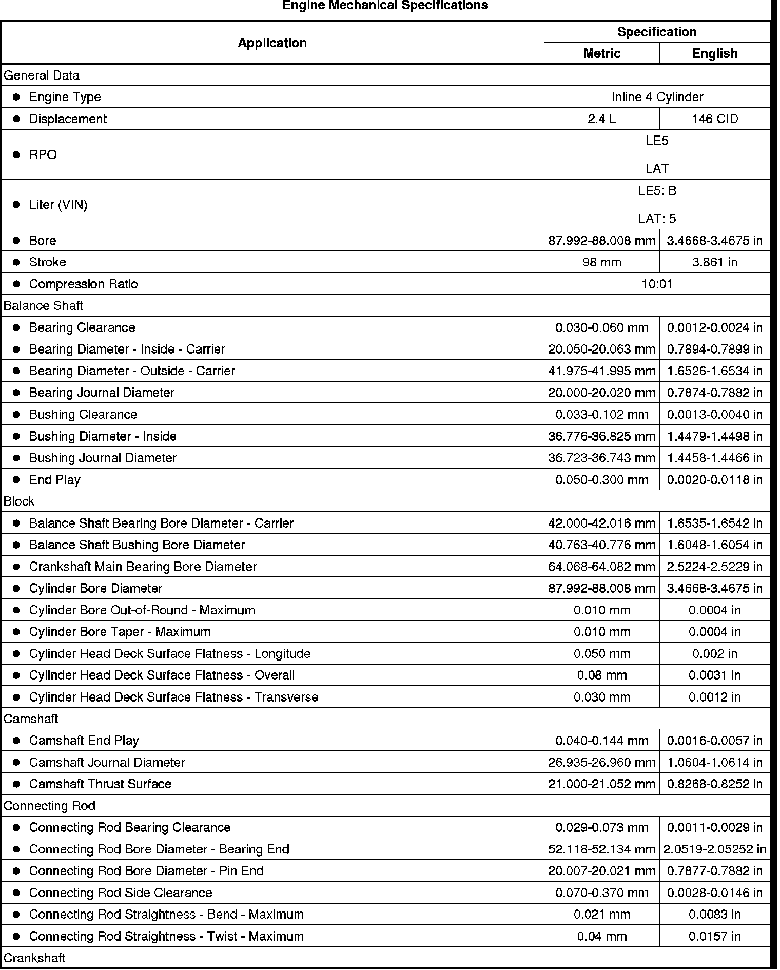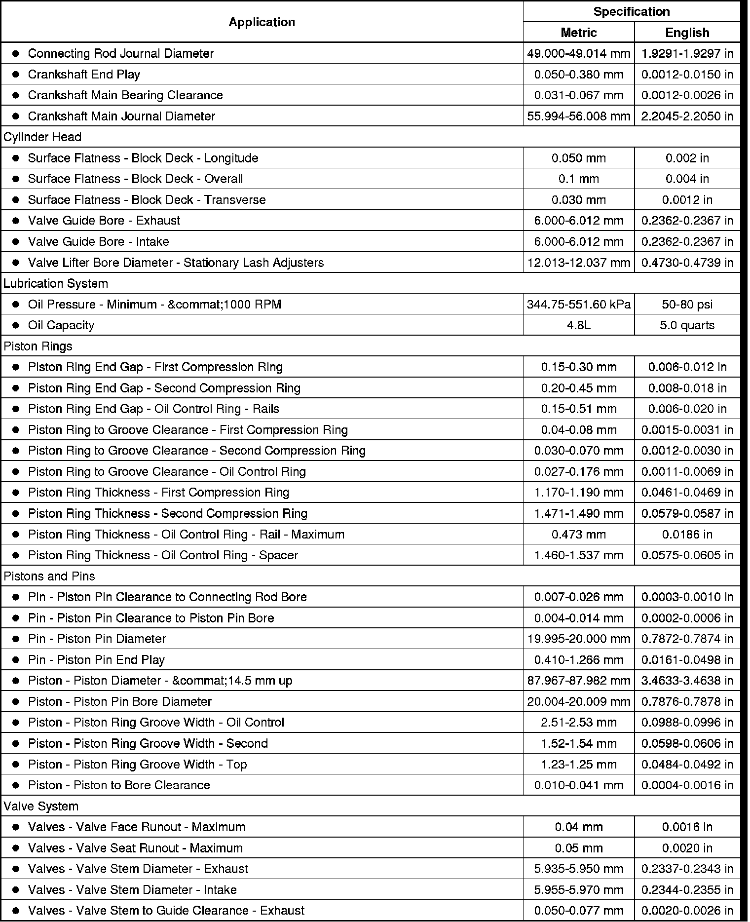 Engine Mechanical Specifications