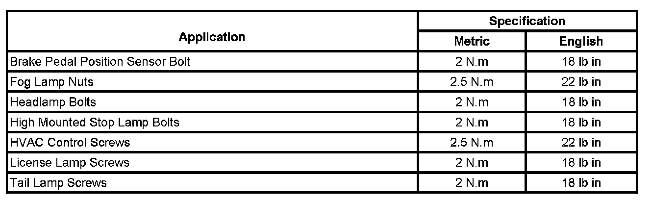 Fastener Tightening Specifications
