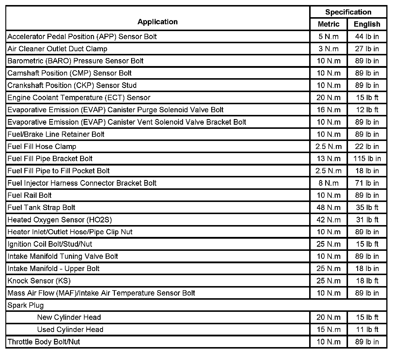 Fastener Tightening Specifications