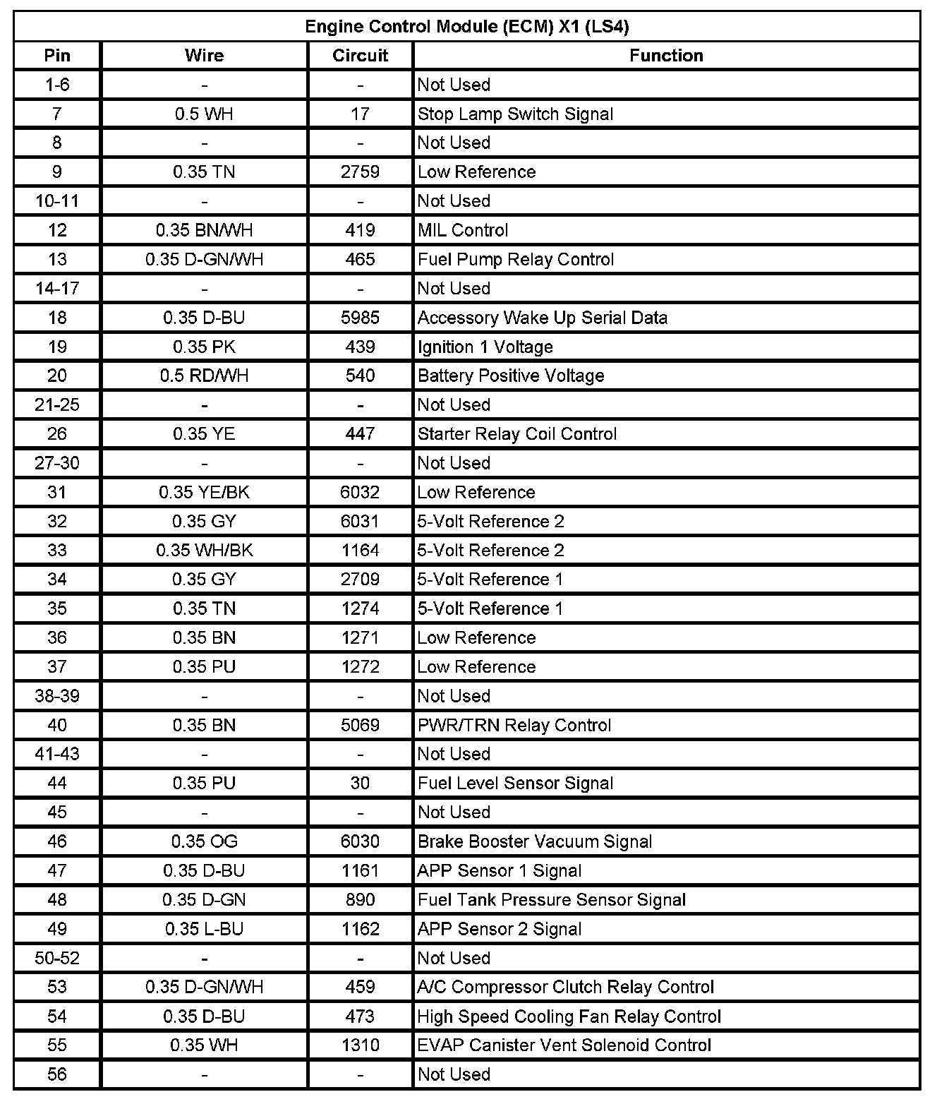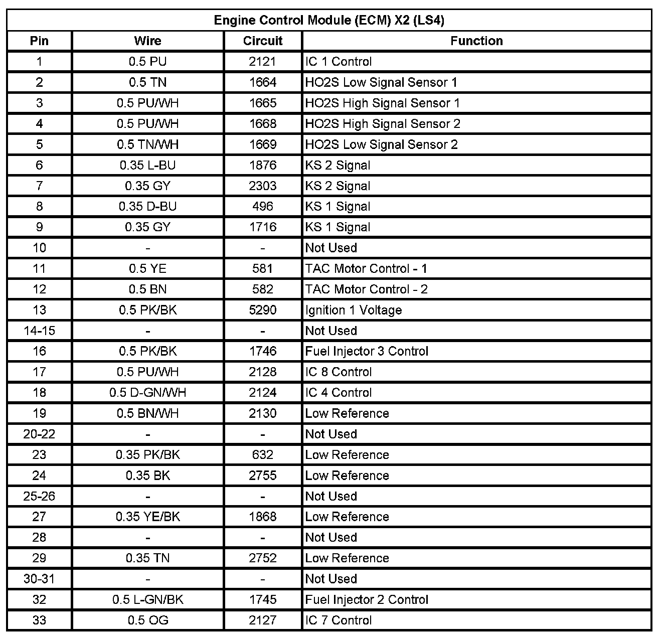 Engine Control Module (ECM) X2 (LS4) (Pin 1 To 33):