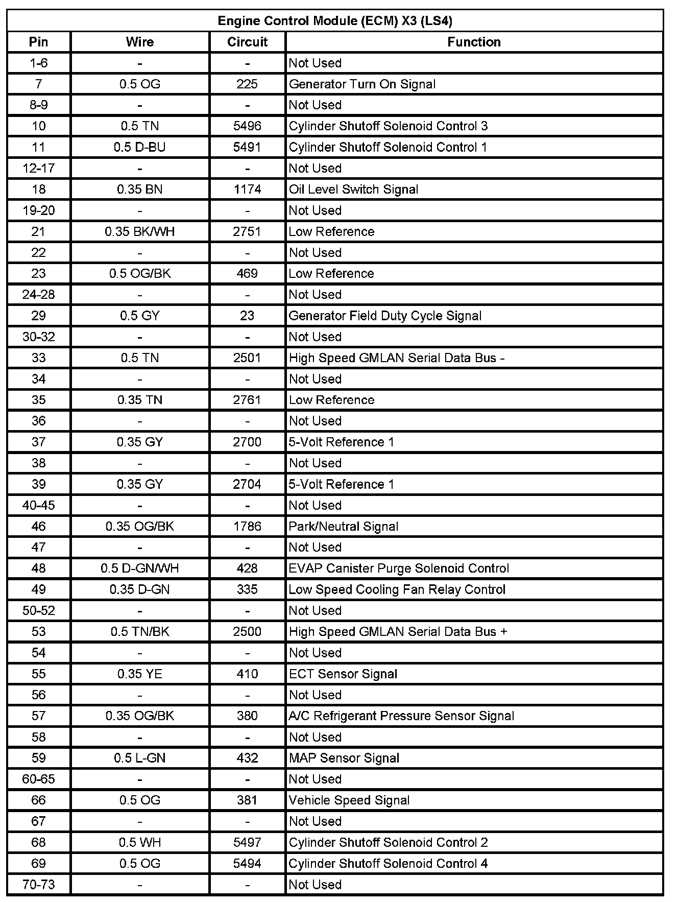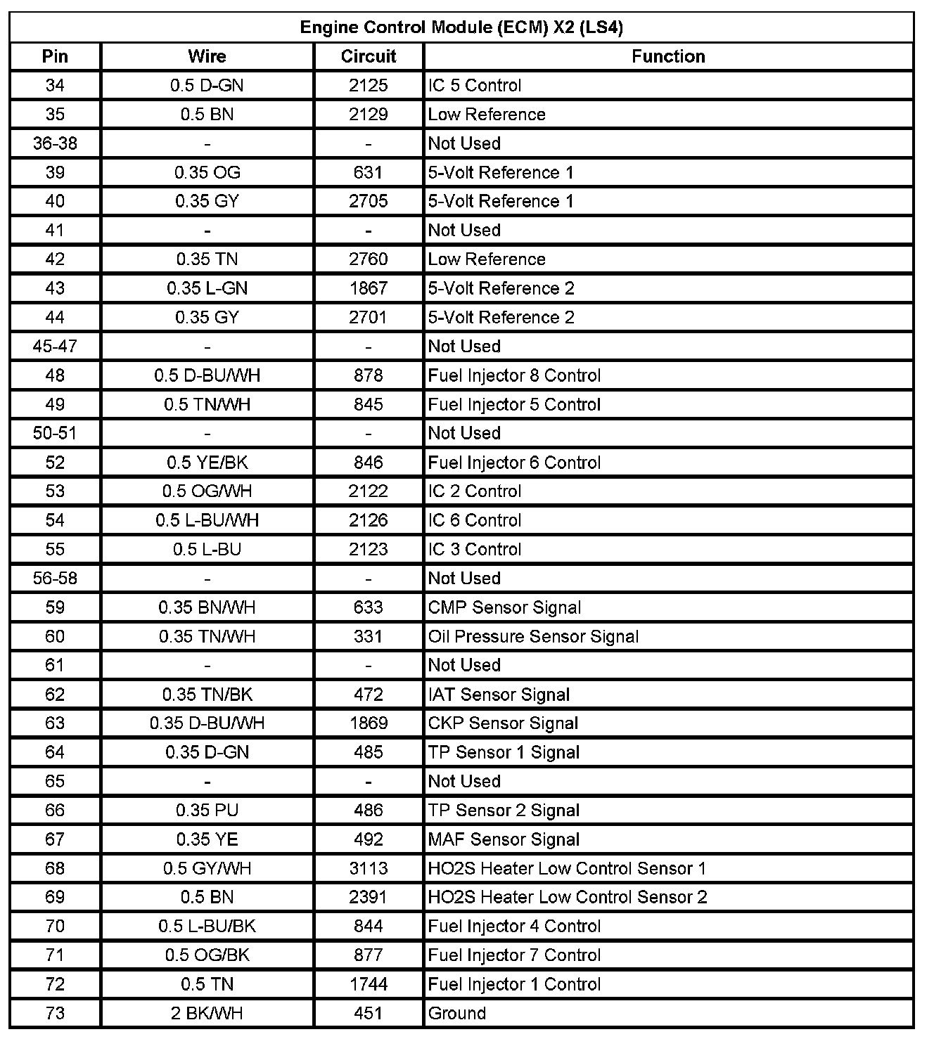 Engine Control Module (ECM) X2 (LS4) (Pin 34 To 73):
