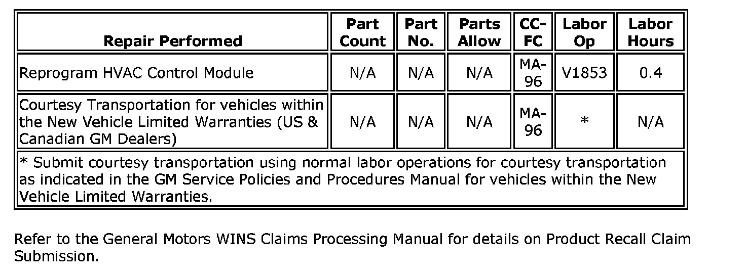 Refer to the General Motors WINS Claims Processing Manual for details on Product Recall Claim Submission.