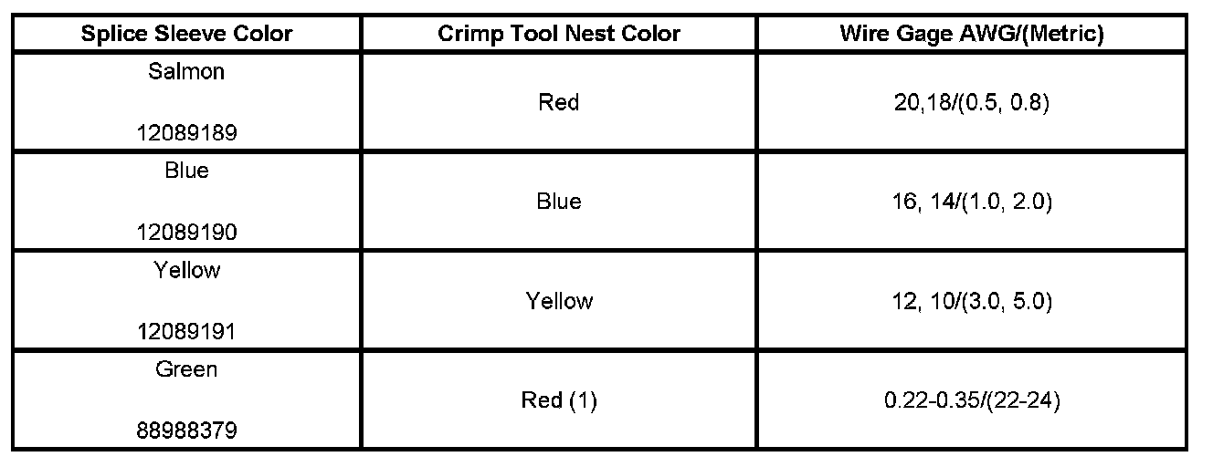 5. Select the proper duraseal splice sleeve (2) and the required crimp nest tool. Refer to the Crimp and Seal Splice Table.
