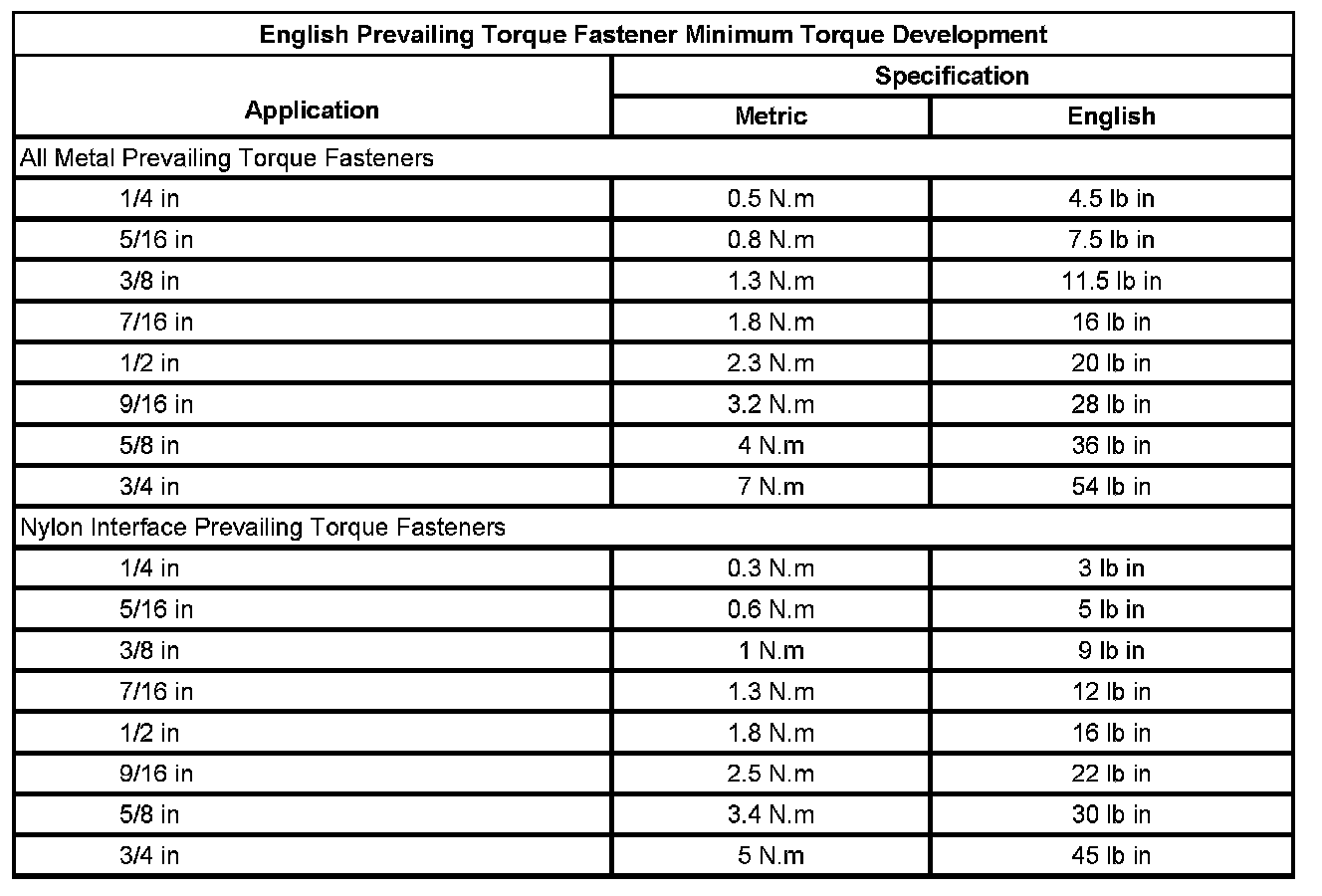 Prevailing Torque Fasteners