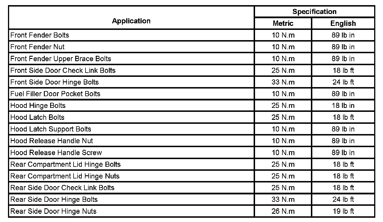 Fastener Tightening Specifications