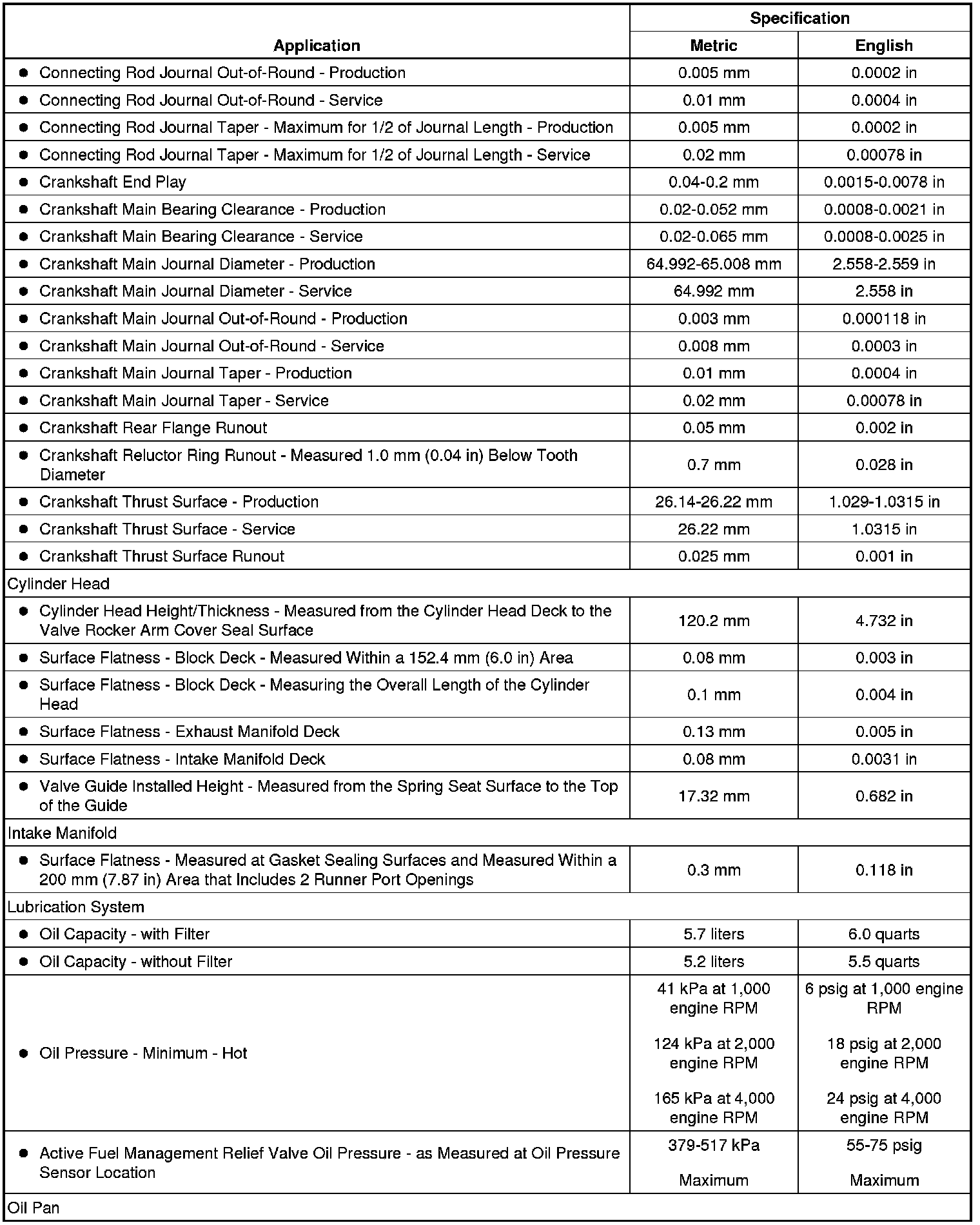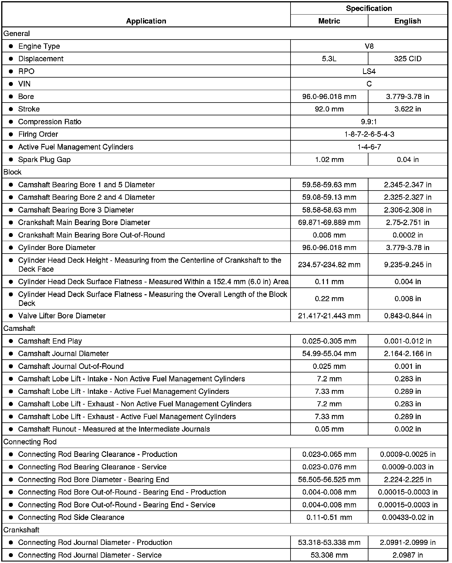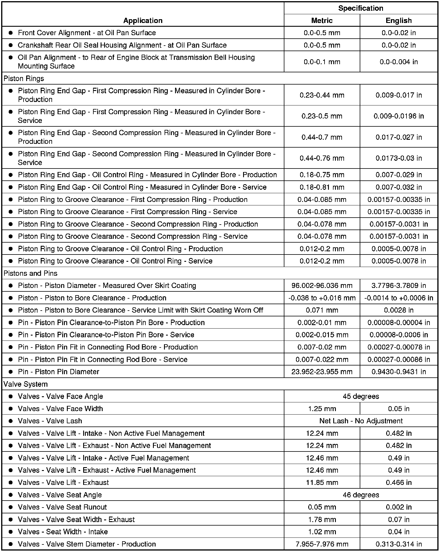 Engine Mechanical Specifications
