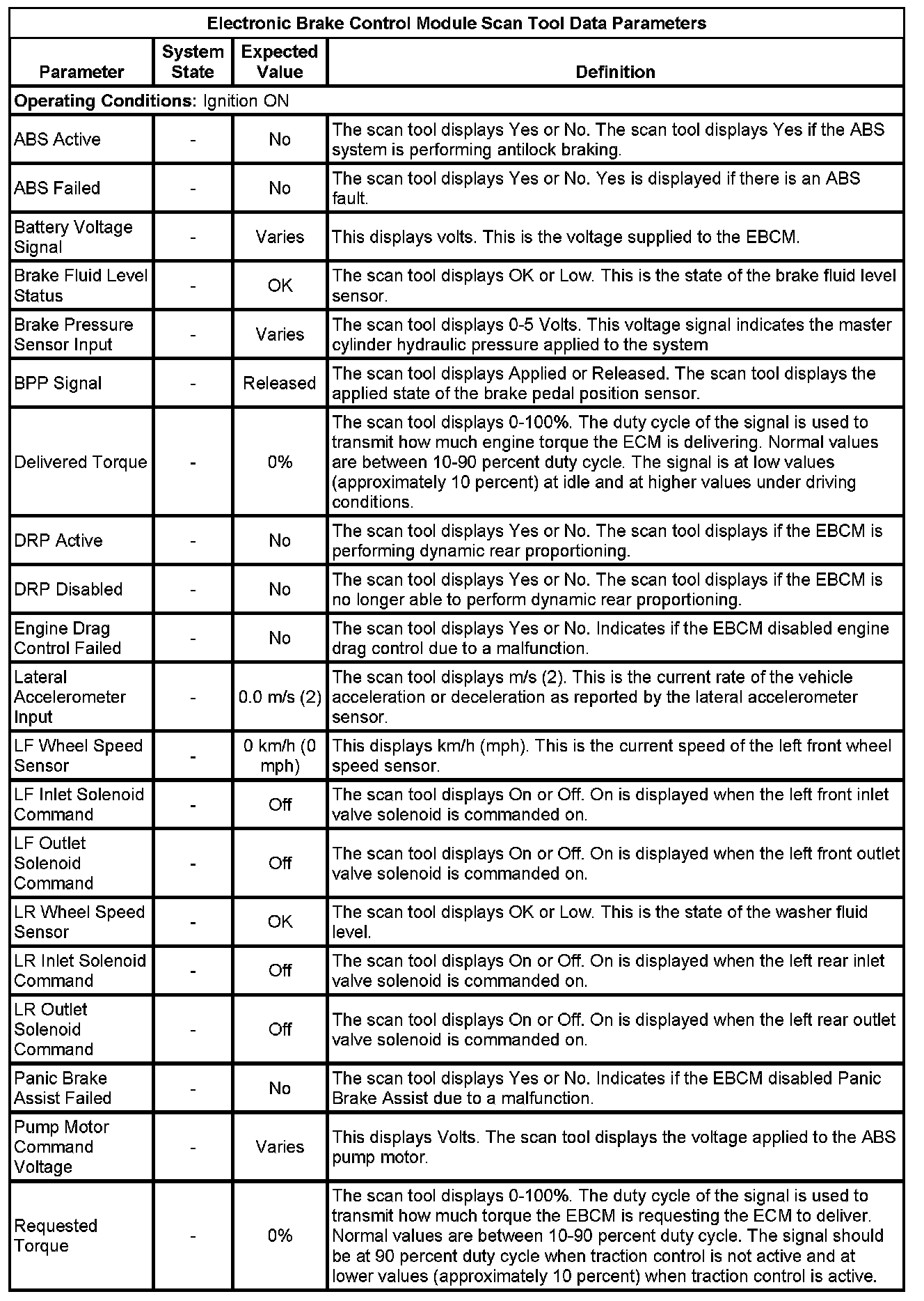Electronic Brake Control Module Scan Tool Information