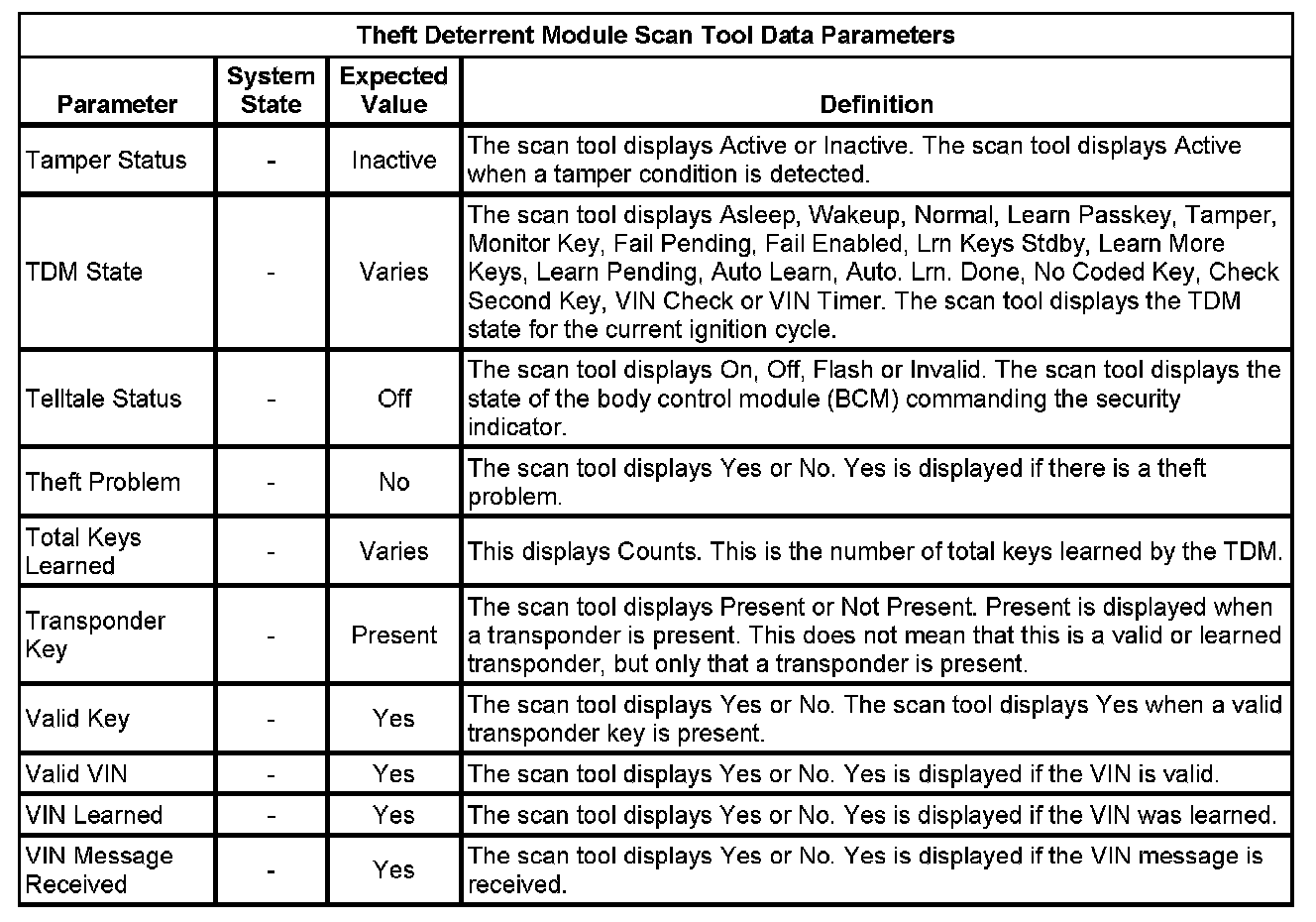 Theft Deterrent Module Scan Tool Information