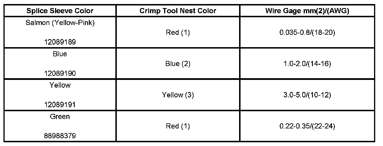 4. Select the proper DuraSeal splice sleeve according to the wire size. Refer to the above table at the beginning of the repair procedure for the color coding of the DuraSeal splice sleeves and the crimp tool nests.