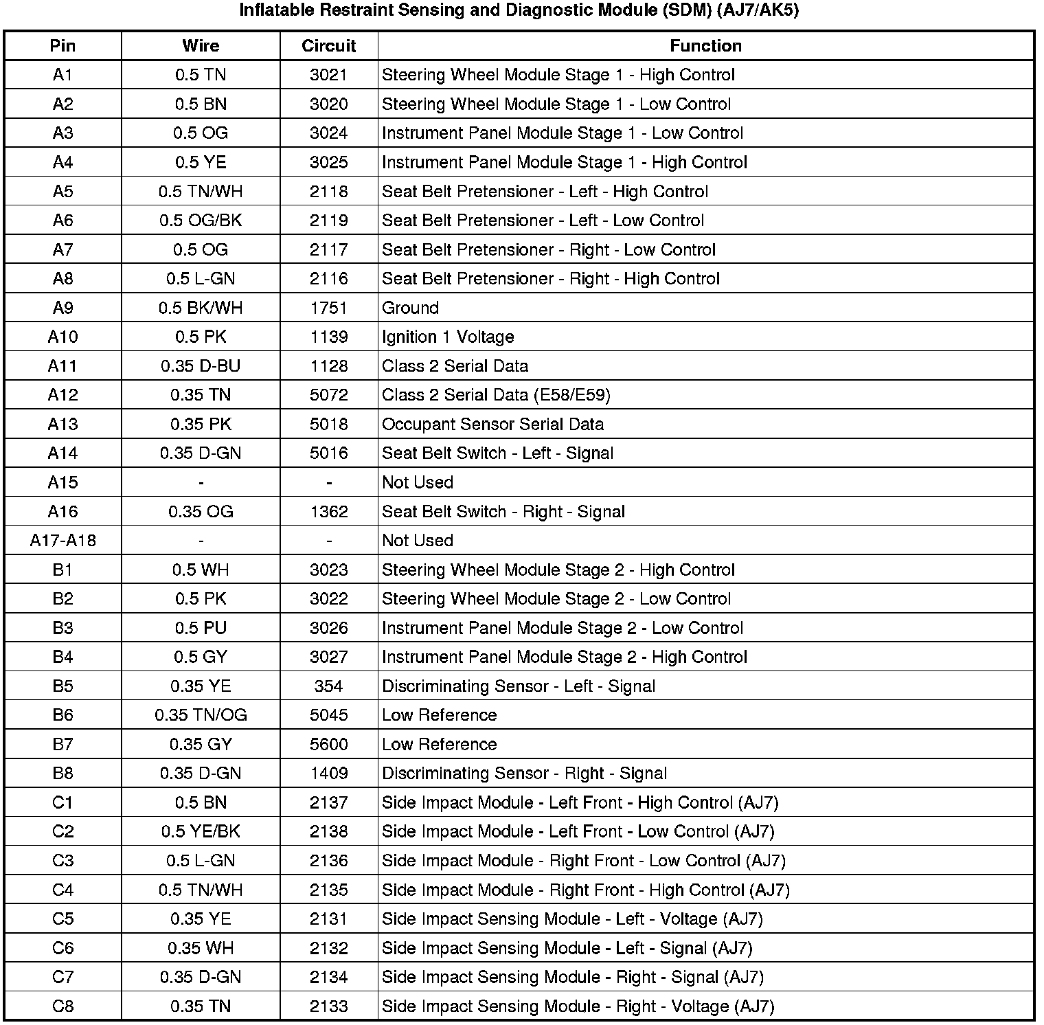 Inflatable Restraint Sensing and Diagnostic Module (SDM) (AJ7/AK5)