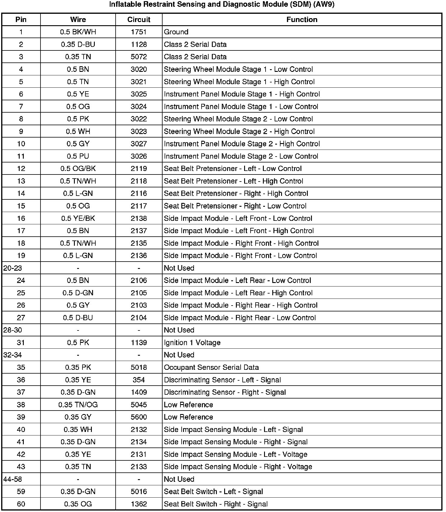 Inflatable Restraint Sensing and Diagnostic Module (SDM) (AW9)
