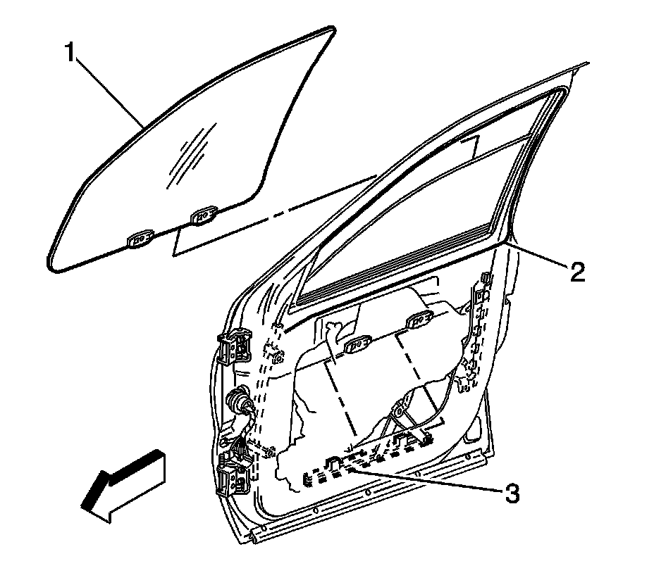1. Remove the door trim panel. Refer to Front Side Door Trim Panel Replacement (Service and Repair).