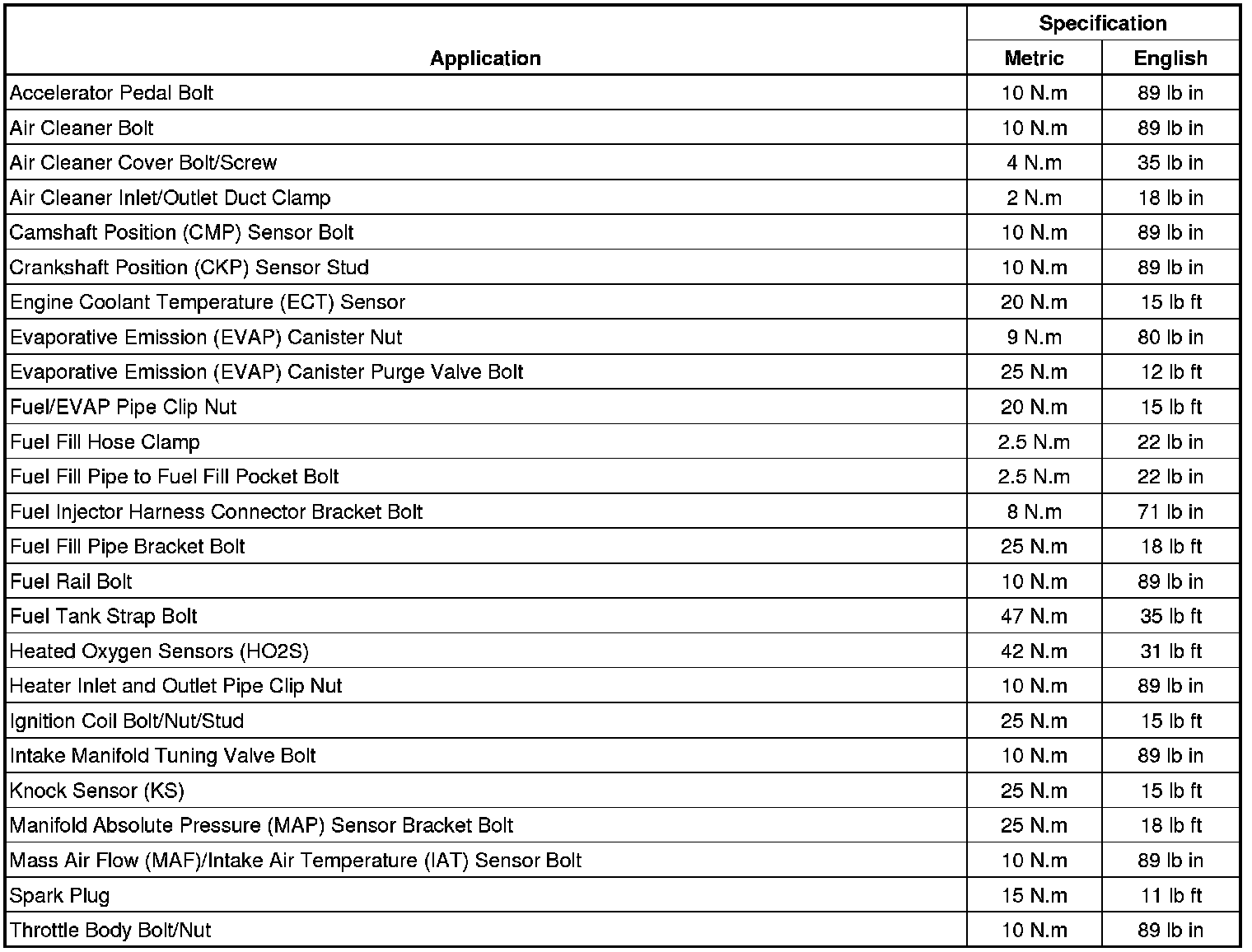Fastener Tightening Specifications