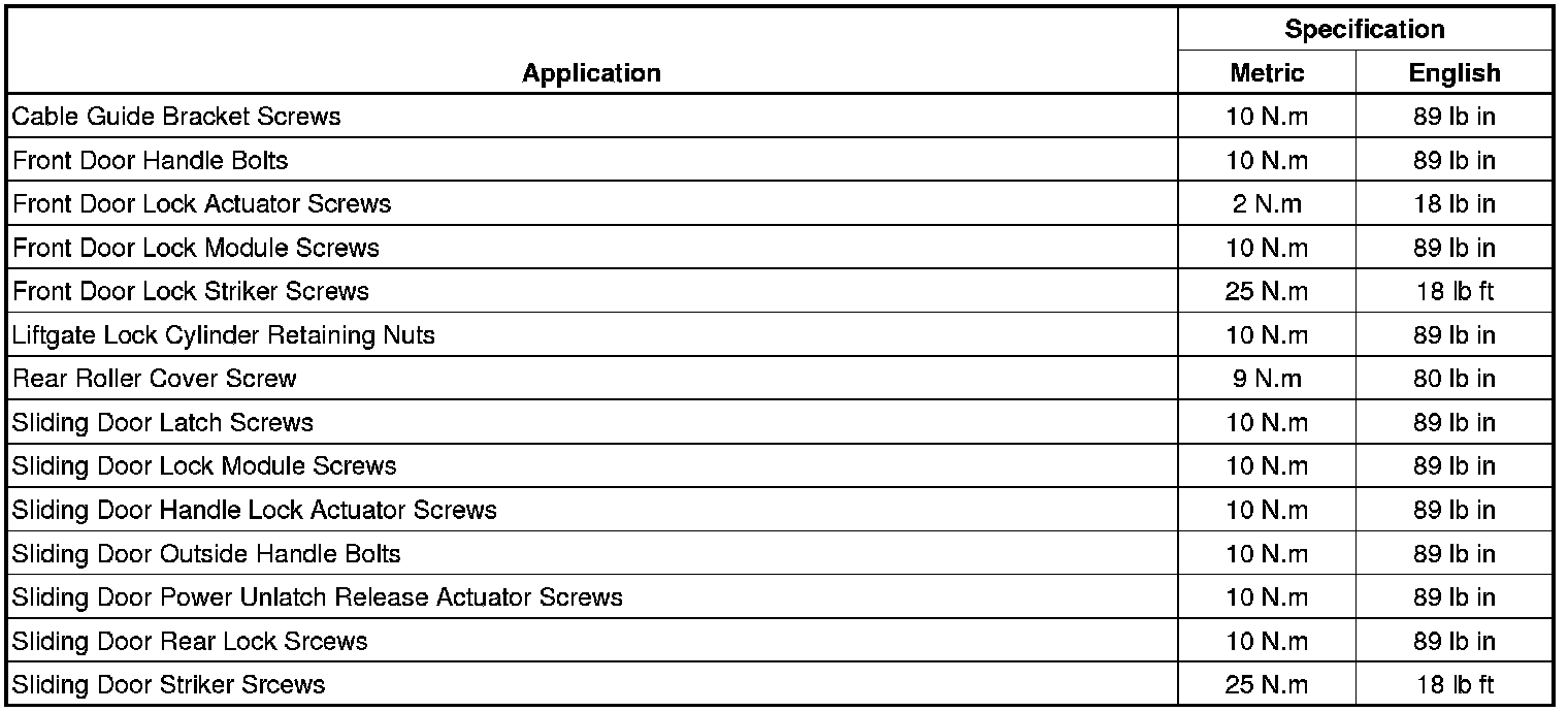 Fastener Tightening Specifications