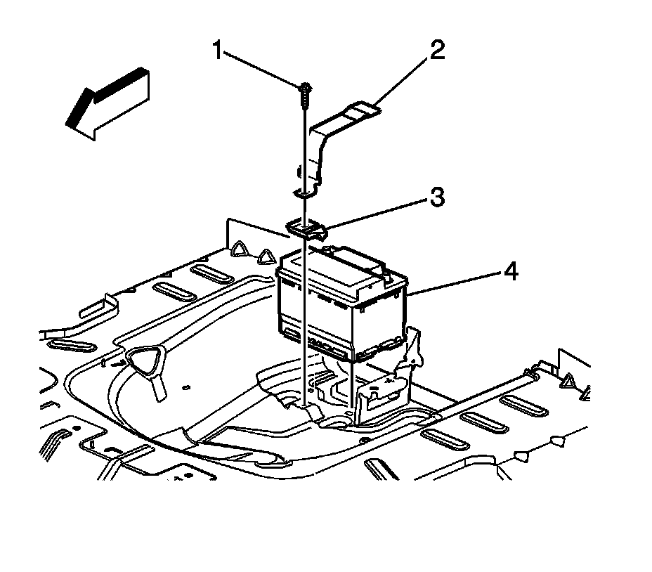 3. Install the battery retainer bolt (1) and tighten to 17 Nm (13 lb ft).